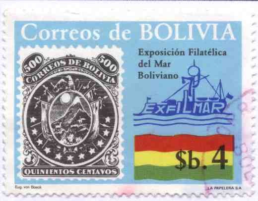 Commémoration de l'exposition philatélique de la mer de Bolivie "EXFILMAR"